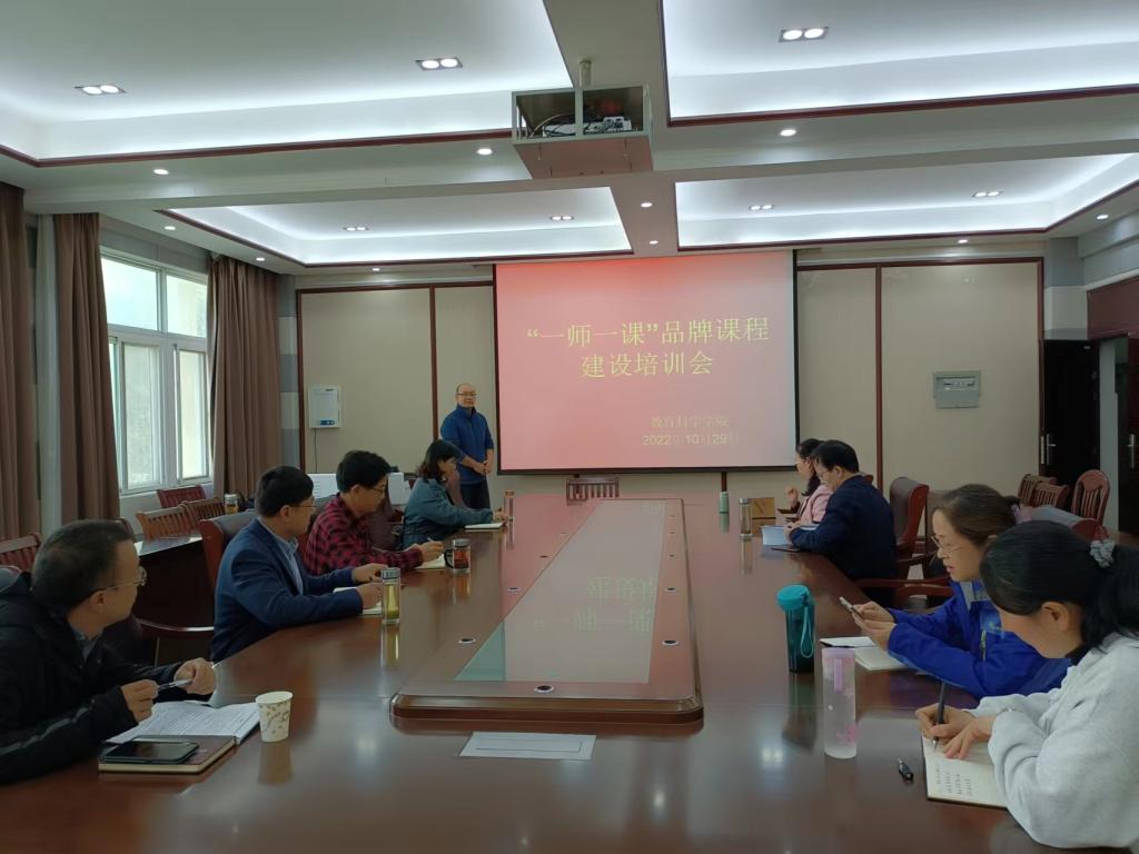时间:2022-10-31 17:36:45 来源:PA视讯 作者: 阅读: 次为落实信阳师范公司“一院一品”工作要求,进一步推动公司“一师一课”品牌课程建设,积极开展课堂教学改革,推动信息技术在课堂教学中的有效应用和深度融合,公司遴选了首批“一师一课”品牌课程10门,并于2022年10月29日在教科楼402会议室举行“一师一课”品牌课程建设培训会,公司党委书记房加帅,副经理郭勇、孙天义,专任课教师刘琦、郑雪松、杨建朝、邢思珍、刘萱、马金焕、汪媛媛参加了培训会。培训会由副经理郭勇主持,刘琦老师主讲。