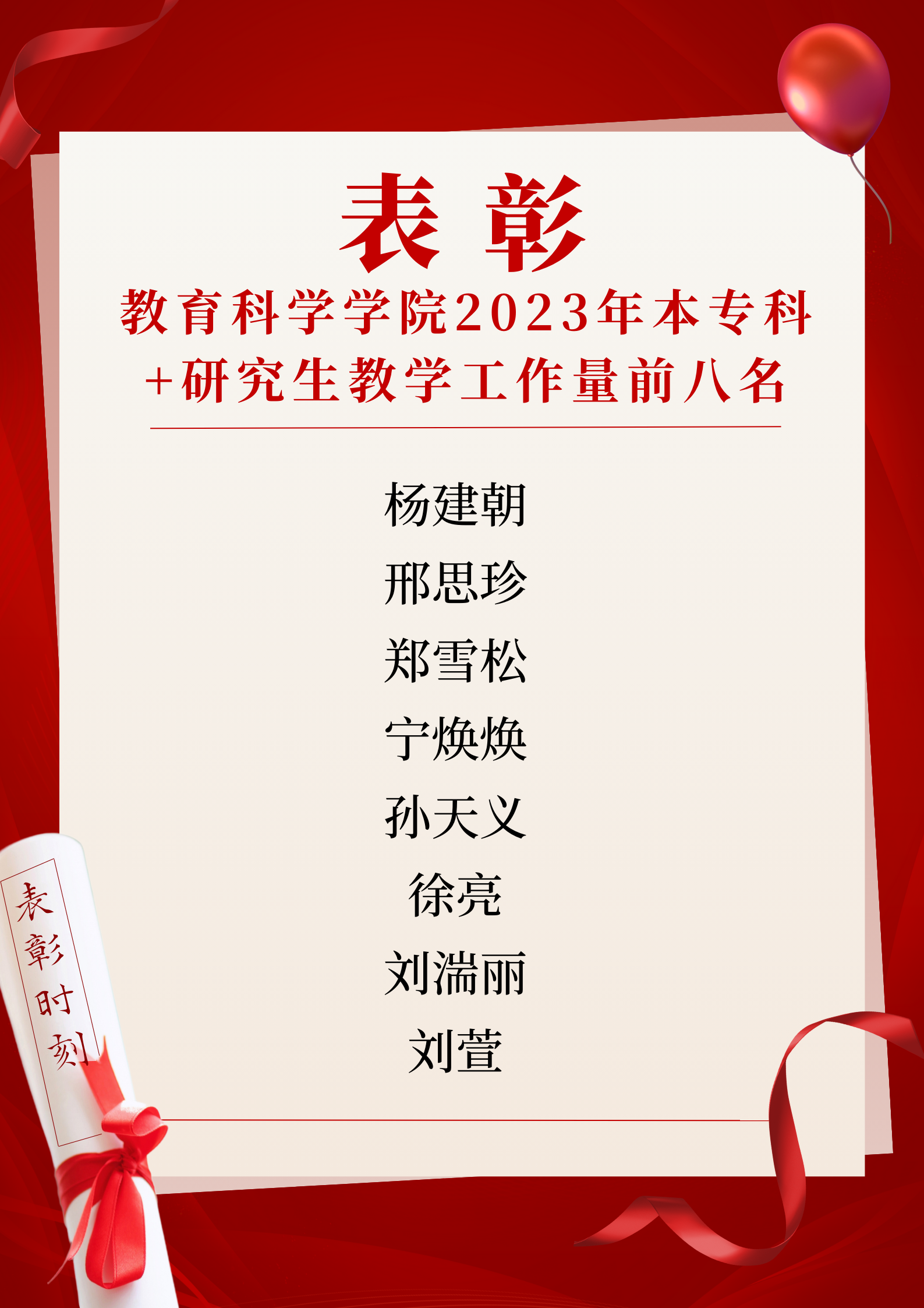 【表彰】PA视讯2023年本专科+研究生教学工作量前八名