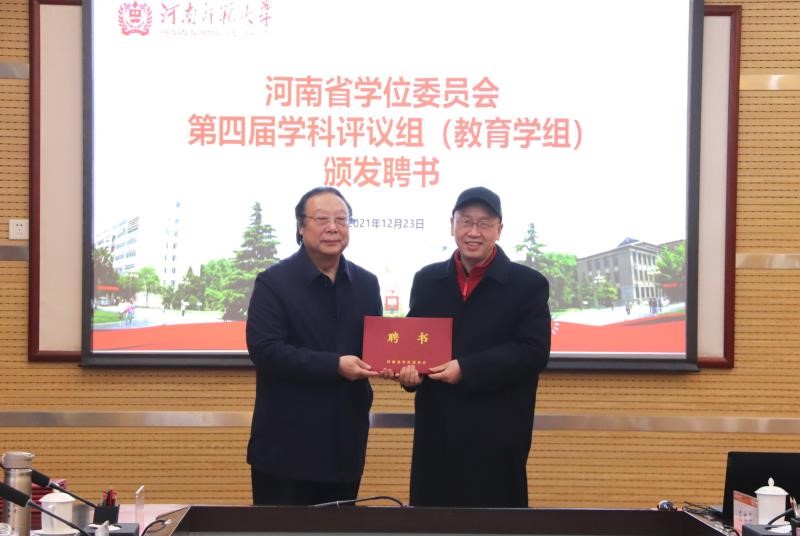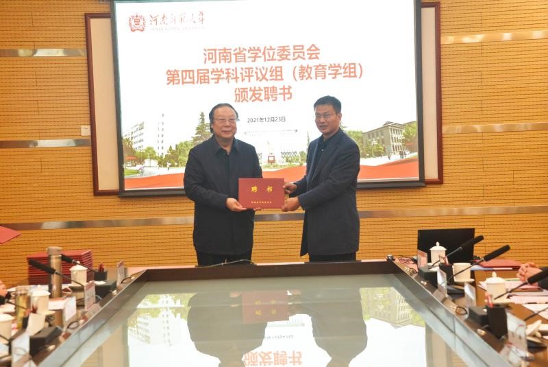 会上,河南师范大学党委书记、教育学科评议组召集人赵国祥教授为公司经理何安明教授、张茂林教授等专家组成员颁发聘书。