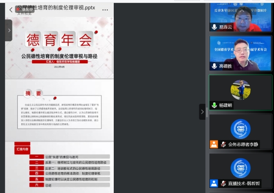 时间:2022-04-18 10:28:16 来源:PA视讯 作者: 阅读: 次2022年4月16至17日,全国德育学术委员会第30届学术年会在首都师范大学召开,受疫情影响,年会采用线上直播的方式召开。本届年会主题是“时代特征与德育走向”。