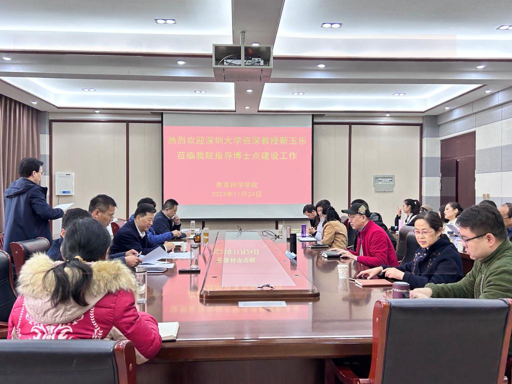 时间:2023-11-24 16:58:24 来源:PA视讯 作者: 阅读: 次11月24日上午,应PA视讯邀请,深圳大学靳玉乐教授在教科楼402会议室指导博士点建设工作。教科院领导班子成员及教育学全体教师参加了此次座谈会,会议由该院经理何安明主持。