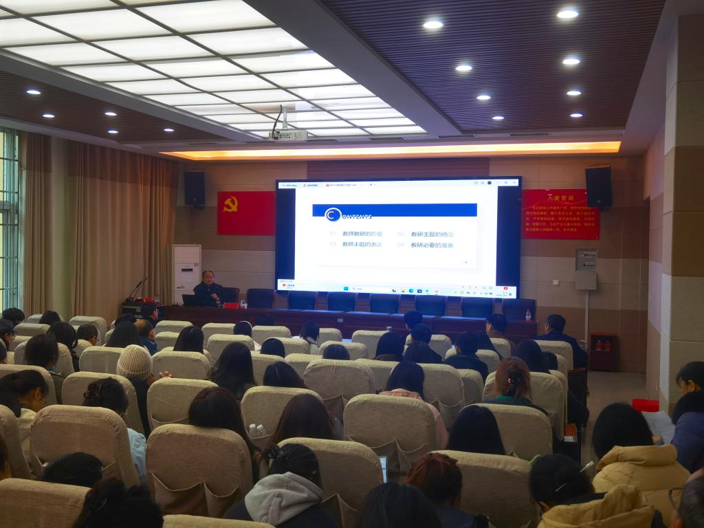 会上,周险峰教授谈及了教学研究在教师专业发展中的重要性,深入探讨了教学研究的价值、教研主题的确立与表达、教学问题的审视、问题意识的培养以及教师在教学研究中的准备,并对以上内容作出了详细的阐释与讲解。此外,周险峰提出了关于教师问题意识的几点思考,强调要关注教师与教学要素之间的问题意识、教师在教学活动中的问题意识、教师对自身专业发展中的问题意识等。报告结束后,周险峰教授与入会教师就教学实践中的问题进行深入探讨,会议现场气氛热烈。