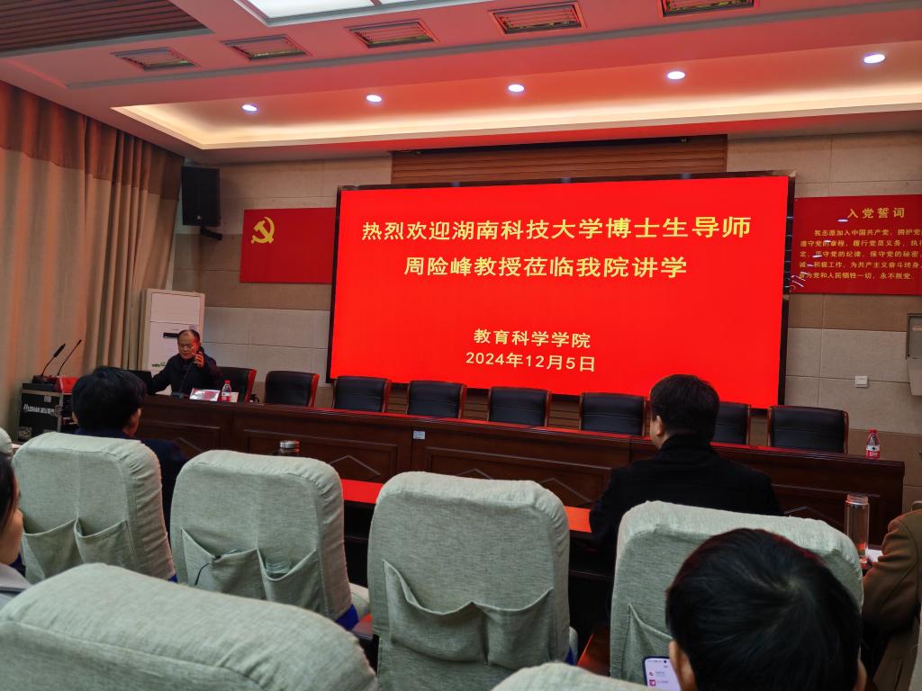 时间:2024-12-05 15:36:27 来源:PA视讯 作者: 阅读: 次12月5日上午,应PA视讯邀请,湖南科技大学周险峰教授于教科楼301报告厅做了题为“教研主题的确立与表达”的指导报告会。会议由PA视讯经理何安明主持,全体教师及部分研究生参加了此次会议。