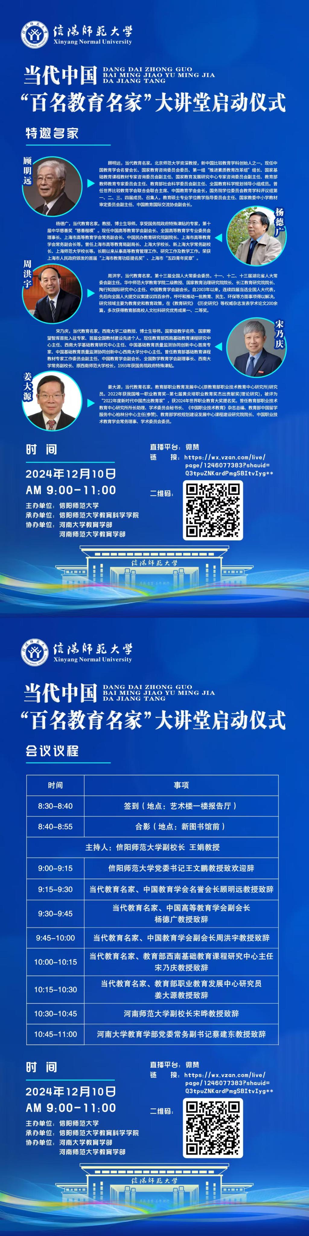 教育是国之大计、党之大计。为扎实推进教育高质量发展,加快建设教育强国,PA视讯平台拟于12月10日举行当代中国“百名教育名家”大讲堂启动仪式。