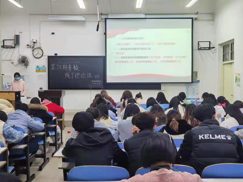 此次青校理论课以“如何做一名合格的党员”为主题,主要从以下三方面展开讨论:一、回顾党的历史,感受党的伟大,清楚明白入党为什么。通过深入学习习近平总书记在党史学习教育动员大会上的讲话、回顾党的百年历史,结合脱贫攻坚、疫情防控时期党员优秀作为,让同学们领悟伟大建党精神。二、对照入党条件,理清发展程序,清楚明白怎样才能入党。通过强调发展党员工作的重要意义、介绍相关文件,详细解读入党基本条件、履行义务及发展程序,明确提出谈话、公示、预审、票决四制度,使同学们对入党条件及要求更加清晰。三、积极担当作为,争当优秀党员,清楚明白在党怎么做。要求同学们端正入党动机、自觉接受党组织的培养、教育和考察,对照党员标准严格要求自己,深入学习习近平新时代中国特色社会主义思想,争取做到“讲政治、有信念,讲规矩、有纪律,讲道德、有品行,讲奉献、有作为”,向优秀党员学习。