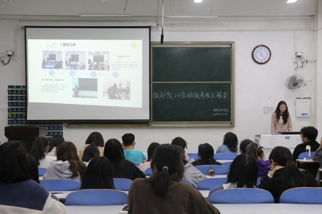 本次班级考核各班主要从班风、学风建设,综合实践等方面对2020年度本班工作进行全面总结,分析存在的不足,并对2021年度的班级建设进行合理的规划,由各班员工组成的评委团从展示形式、展示内容及汇报者变现三个方面进行评价,最终,2018级心理学班荣获本次班级汇报第一名。牛洁楠对本次考核进行总结,她充分肯定各班2020年度的工作,认为各个班级管理都有亮点、有特色、有成效,对推动公司学风建设及团学工作起到了很好的促进作用。同时,她也希望各班能通过此次考评,认真总结经验和不足,互相学习,更好的做好班级管理工作,努力建设优秀班集体。