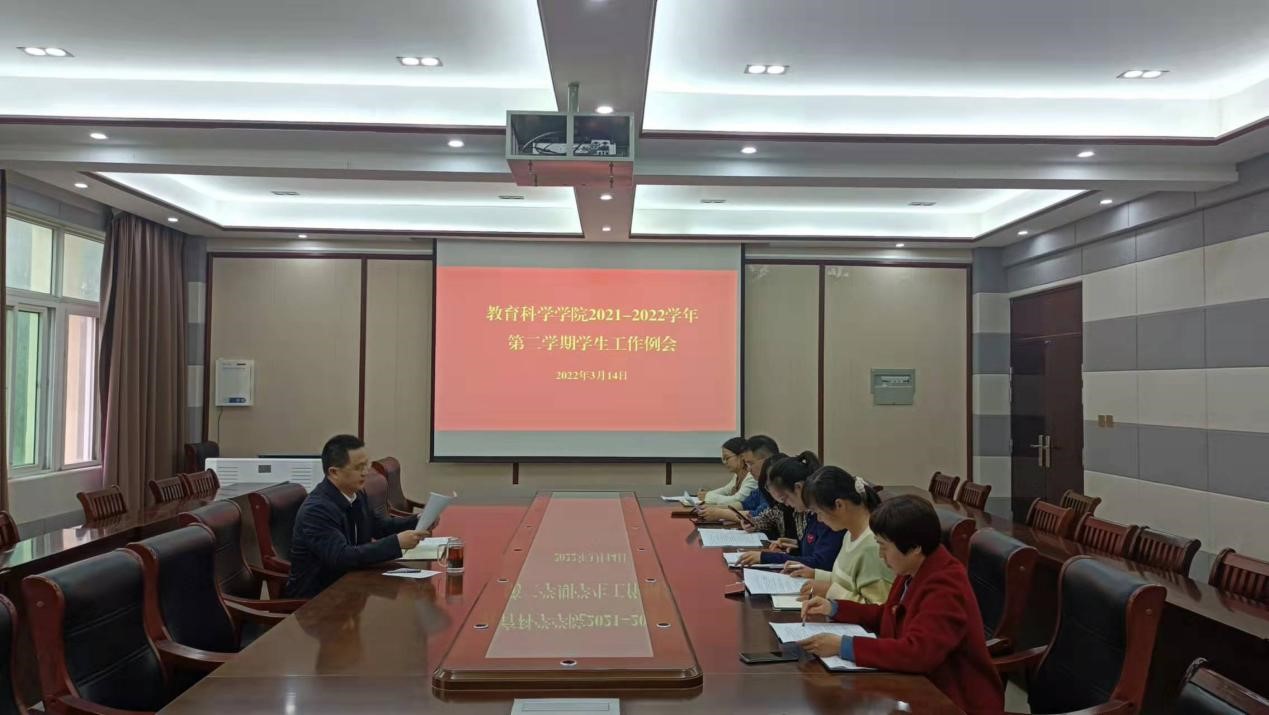时间:2022-03-17 18:15:36 来源:PA视讯教科院新闻部 作者:马玉娇 周媛媛 刘至涵 阅读: 次为加强工作谋划,统筹推进工作落实,促进教科院员工工作再上新台阶,3月14日,公司在教科楼402会议室召开2021—2022学年第二学期第3次员工工作会议。党委副书记董银银及全体专职辅导员参加会议。