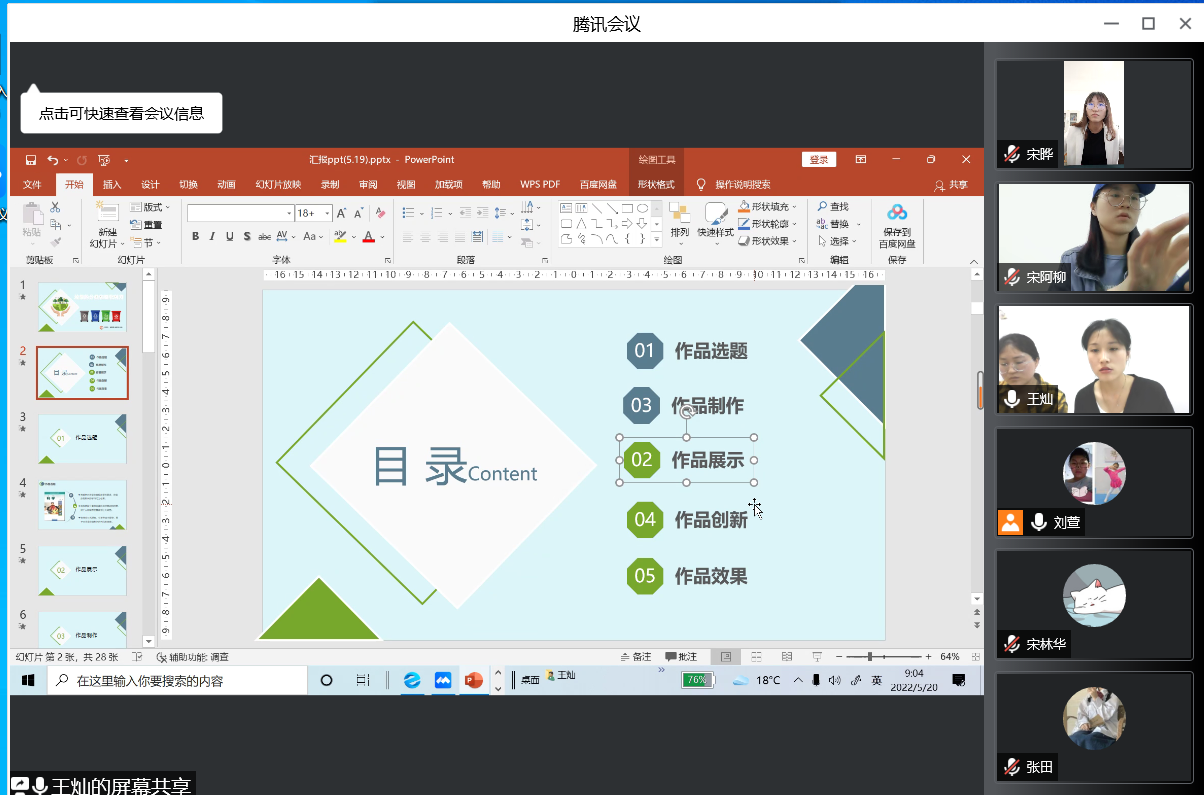 为了增强参赛选手对比赛流程的熟悉度,5月20日上午,PA视讯教育技术学专业分别在教科楼303、410会议室举办“2022年第十五届中国老员工计算机设计大赛”省赛线上模拟赛。本次比赛采取腾讯会议的方式,以老师提问、员工演示并答辩的流程线上进行。来自公司教育技术学专业的2018级、2019级和2020级参赛员工在领队老师刘萱、刘琦、宋晔的指导下,认真了解比赛流程,积极准备参加比赛。