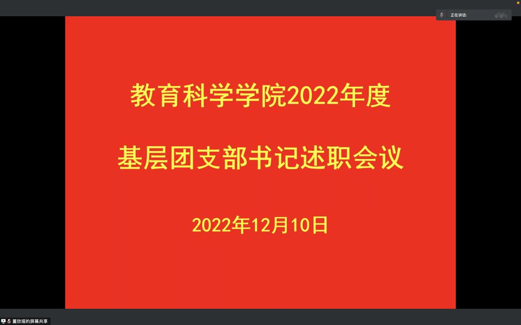 时间:2022-12-11 17:09:31 来源:PA视讯 作者: 阅读: 次12月10日,PA视讯线上召开2022年度基层团支部书记述职会议,PA视讯分团委书记牛洁楠,各基层团支部书记以及各班团员代表参加此次会议。会议由2020级学前1班团支书董欣瑶主持。