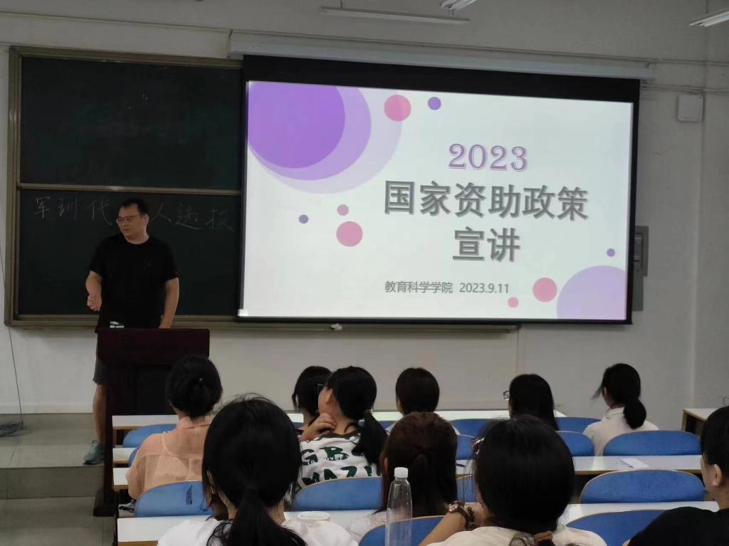 时间:2023-09-12 12:06:15 来源:PA视讯教科院新闻宣传中心 作者:荆媛媛 浮梦杰 阅读: 次为深入贯彻落实国家高校资助政策,引导广大新生正确认识员工资助政策,9月11日,PA视讯2023级全体班级在教科楼举办2023级新生资助政策宣讲会,各班辅导员及各班新生参加此次宣讲活动。