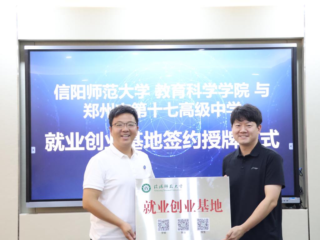 缑星代表公司分别与各用人单位签署校企合作协议,并向郑州市第十七高级中学、河南省生之涯教育科技有限公司、澳德菲尔工程科技(河南)有限公司授予“PA视讯平台就业创业基地”牌匾。