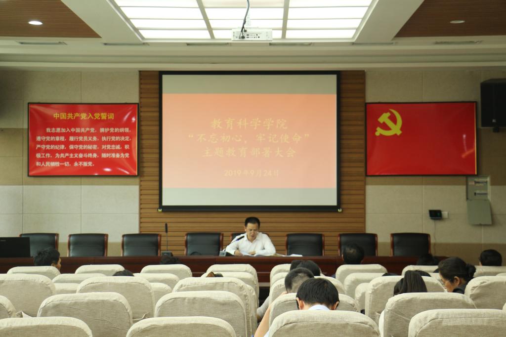 李辉书记详细解读了公司的《关于印发<中共信阳师范公司委员会关于开展“不忘初心、牢记使命”主题教育的实施方案>的通知》精神,从总体要求、重点内容、开展形式等多方面对公司主题教育工作进行了安排部署。他表示此次主题教育以处级领导干部为重点,要求全体党员参加,聚焦为党育人,着力整改党组织建设,并解决工作中存在的突出问题,各支部要组织党员学习习近平总书记在“不忘初心、牢记使命”主题教育工作会议上的重要讲话精神,认真贯彻落实“不忘初心,牢记使命”主题教育工作。此外,李辉书记要求处级领导带头参加主题教育,发挥示范引领作用,把责任担起来,把问题改彻底。支部书记要严格按照要求,带领全体党员积极参与到本次主题教育活动中,上好专题党课,找初心、担使命,为公司和公司的发展做出应有贡献。会后,教科公司党委为每个党支部配发了学习资料和硬盘,要求各支部在接下来的时间里,结合工作实际,做到“规定学习做到位,自选学习有特色,学习心得存过程,学习结果显数字”。