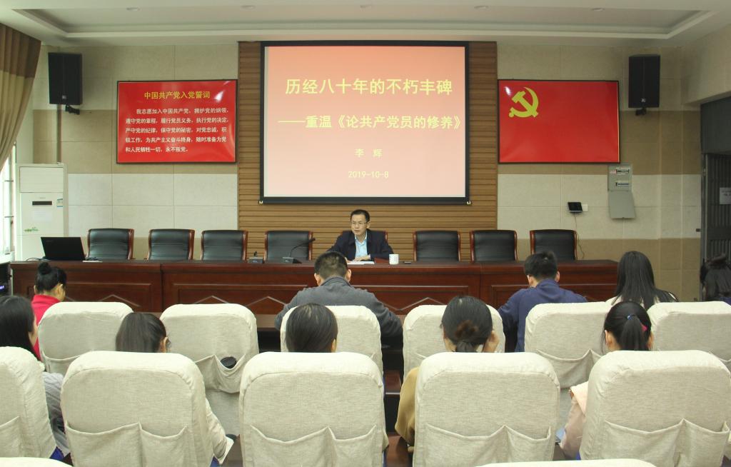 公司党委书记李辉,在教科301会议室,为教工第三党支部和员工第一党支部讲授以“历经八十年的不朽丰碑”为主题的党课。他带领党员们学习了《论共产党的修养》一书,通过对该书的主要内容的解读,使党员们认识到作为一个优秀党员应具备的自身修养。他强调党员要结合当下的国情、党情,学习和继承党的优良品质,明确党的初心和使命,不断完善自己,积极发挥党员先锋作用。