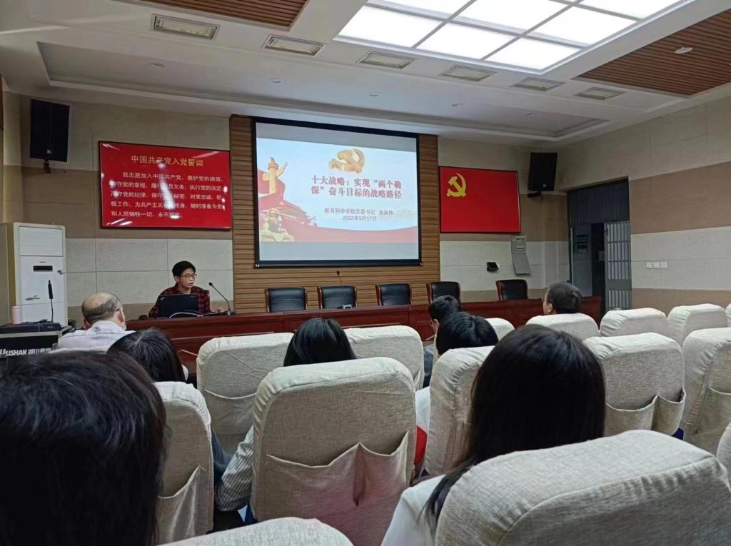 时间:2022-05-18 12:39:36 来源:PA视讯教科院新闻部 作者: 阅读: 次为深入开展“能力作风建设年”活动,5月17日下午,PA视讯在教科楼301会议室开展“十大战略”专题党课学习活动,教科公司党委书记房加帅作了《十大战略:实现“两个确保”奋斗目标的战略路径》的辅导报告。会议采用线上线下相结合的方式,教科院全体党员参加。