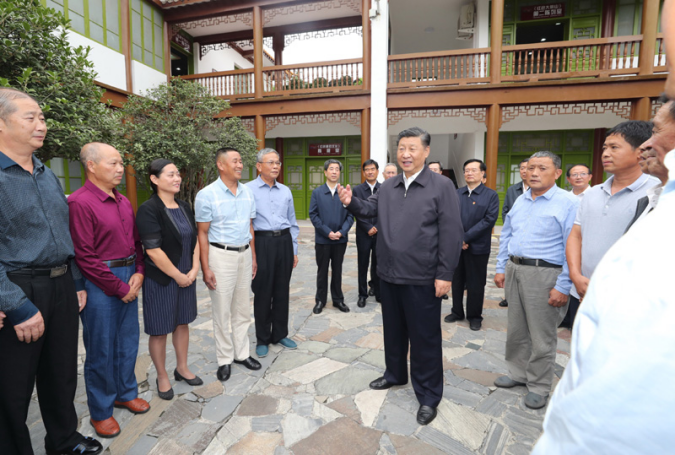 9月16日至18日,中共中央总书记、国家主席、中央军委主席习近平在河南考察。这是16日下午,习近平在信阳市新县田铺乡田铺大塆考察调研。新华社记者 谢环驰 摄