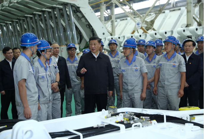 17日下午,习近平来到郑州煤矿机械集团股份有限公司。这是一家国家级高新技术企业,经过60多年发展,已经成为全球重要的煤矿综采技术和装备供应商、国际领先的汽车零部件制造企业。在企业展厅,习近平听取了企业开展科技创新、进行海外并购、推动产品转型升级情况介绍。总装车间内,煤矿液压支架产品整齐排列,习近平仔细观看了液压支架操作演示。他强调,制造业是实体经济的基础,实体经济是我国发展的本钱,是构筑未来发展战略优势的重要支撑。要坚定推进产业转型升级,加强自主创新,发展高端制造、智能制造,把我国制造业和实体经济搞上去,推动我国经济由量大转向质强,扎扎实实实现“两个一百年”奋斗目标。
