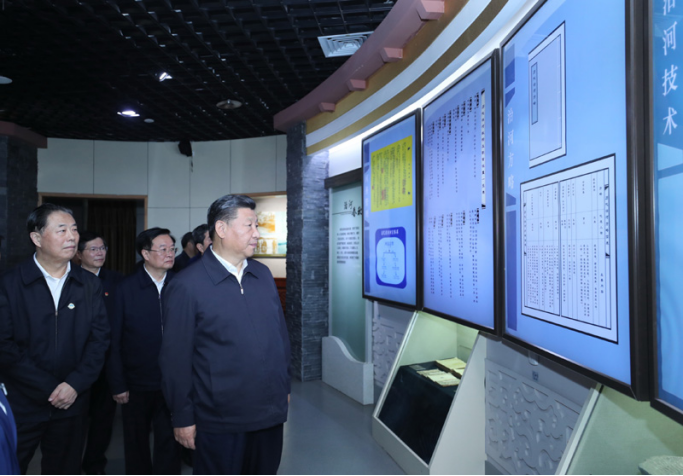 黄河是中华民族的母亲河、中华文明的摇篮。党的十八大以来,习近平总书记多次实地考察黄河流域生态保护和发展情况,多次就三江源、祁连山、秦岭等重点区域生态保护建设提出要求。17日下午,习近平来到黄河博物馆,走进展厅参观展览,了解黄河流域文明发展、水患治理、生态保护等的历史变迁。习近平不时驻足端详陈列的文物标本、历史文献和图片图表,就有关问题同大家探讨交流,充分肯定中华民族在同黄河水患的斗争中展现的不屈不挠、顽强拼搏的奋斗精神。