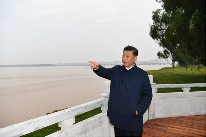 9月16日至18日,中共中央总书记、国家主席、中央军委主席习近平在河南考察。这是17日下午,习近平在郑州黄河国家地质公园,眺望黄河郑州段。新华社记者 谢环驰 摄