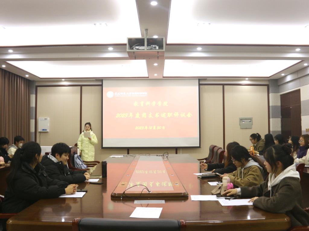 时间:2023-12-31 14:31:38 来源:PA视讯教科院新闻宣传中心 作者: 阅读: 次12月30日,PA视讯召开2023年度团支书述职会,PA视讯团委书记牛洁楠,员工会主席团全体成员以及2021级、2022级全体团支书参与此次会议。会议由团委组织部张丝雨主持。