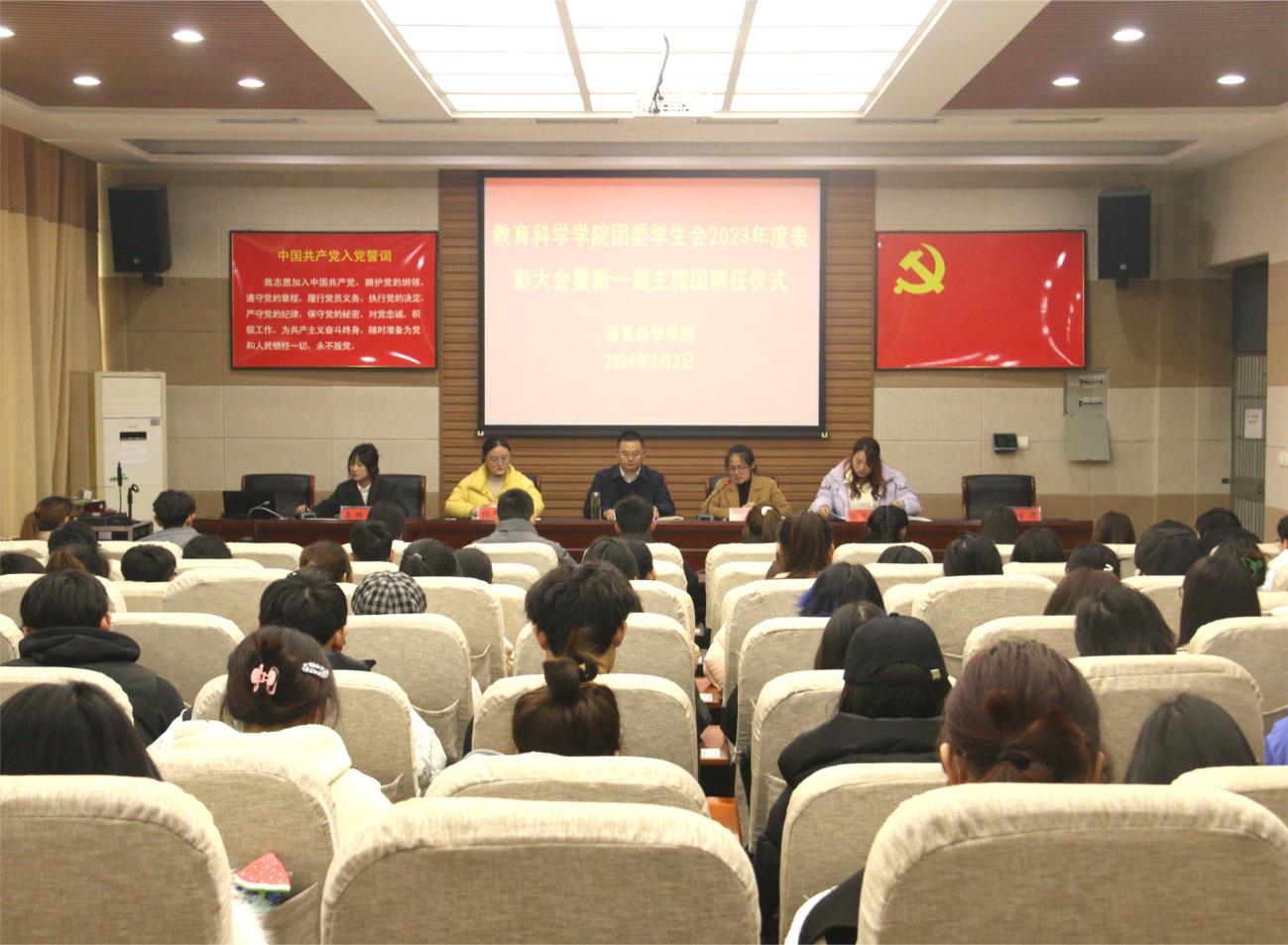 时间:2024-03-03 14:50:46 来源:PA视讯教科院新闻宣传中心 作者:荆媛媛 浮梦杰 阅读: 次3月2日,PA视讯于教科楼301会议室召开团委员工会2023年度表彰大会暨2024年度主席团聘任仪式。本次会议由PA视讯团委书记牛洁楠主持,教育科学公司党委副书记董银银、全体专职辅导员、全体团学骨干、2022、2023级各班班长和团支书及员工代表参加此次会议。