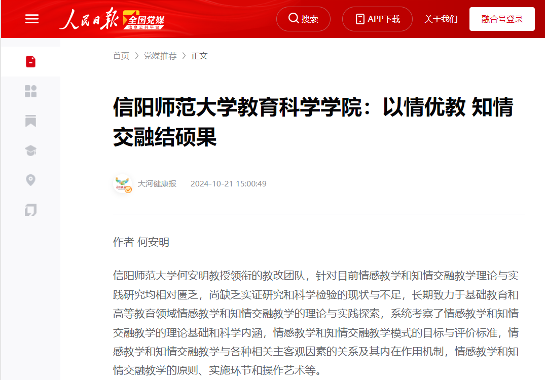 何安明教授领衔的教改团队针对目前情感教学和知情交融教学理论与实践研究均相对匮乏,尚缺乏实证研究和科学检验的现状与不足,长期致力于基础教育和高等教育领域情感教学和知情交融教学的理论与实践探索,系统考察了情感教学和知情交融教学的理论基础和科学内涵,情感教学和知情交融教学模式的目标与评价标准,情感教学和知情交融教学与各种相关主客观因素的关系及其内在作用机制,情感教学和知情交融教学的原则、实施环节和操作艺术等。