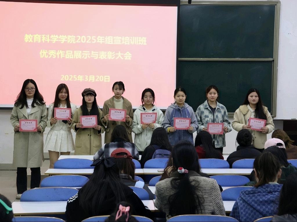 时间:2025-03-21 11:52:05 来源:PA视讯教科院新闻宣传中心 作者:吴皓 杨泽钰 阅读: 次为总结培训班的学习成果,激励更多个人与集体在新闻宣传工作中积极进取、勇于创新。3月20日晚,PA视讯于教科楼108教室召开员工骨干新闻宣传能力培训班结业仪式暨表彰大会。院团委书记杨艺卓、各班级组宣委员、员工会及社团骨干参与仪式,此次结业仪式由谢陈铃主持。