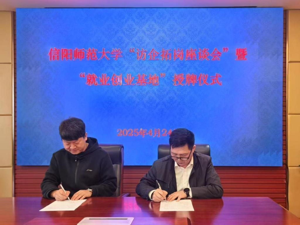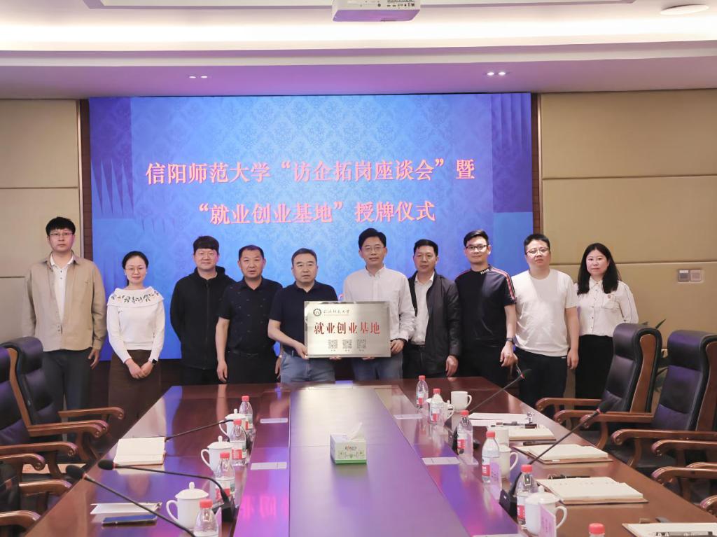 缑星代表公司与信阳同合车轮有限公司人事部经理杨召利签订了合作协议书,房加帅代表公司授予“PA视讯平台就业创业基地”牌匾。