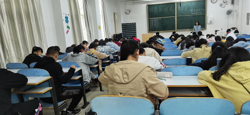 本次竞赛形式为笔试,测试范围较广,主要包括《国防法》、《兵役法》、《国防教育法》等内容,通过填空题、选择题、判断题及简答题四种题型,综合考察同学们的国防知识学习水平。考试开始前,监考人员点名确保考生全部到齐,随后同学们自觉把手机和相关书籍放在指定位置。考试过程中,监考人员认真监考,确保考试的真实性,同学们低头奋笔疾书,认真答题,自觉遵守考场纪律,严肃认真地对待考试。一个小时过后,考试在安静又不失紧张的气氛中顺利结束。