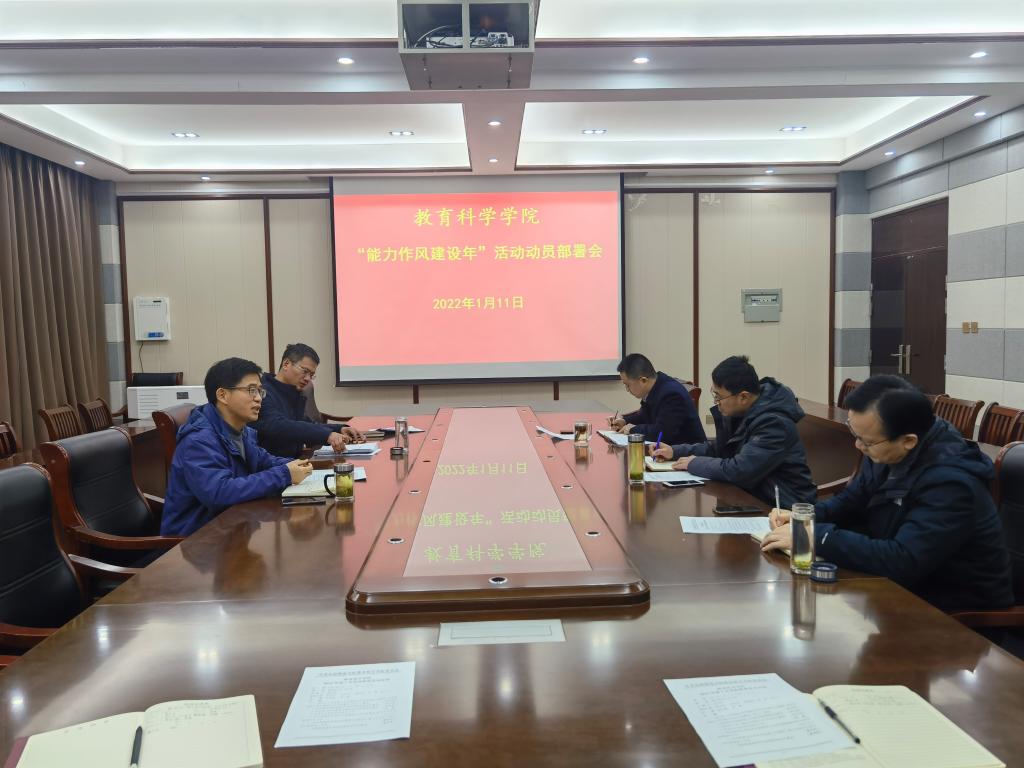 时间:2022-01-12 10:31:07 来源:PA视讯 作者:张纪娥 阅读: 次为贯彻落实省委、省高校工委和公司党委关于开展“能力作风建设年”活动要求,1月11日下午,教科院采取线下线上相结合的方式召开“能力作风建设年”活动动员部署大会,公司领导班子成员、部分科级干部和行政管理人员在教科楼303会议室参会,其余教职工线上参加。会议由党委副书记董银银主持。