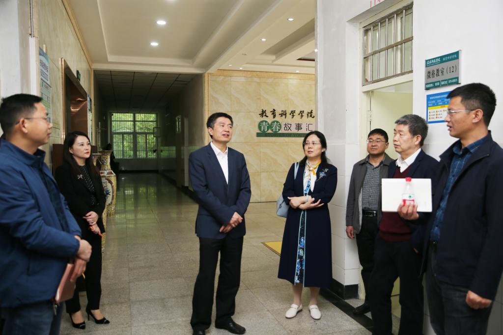 余本海实地查看公司微格教室等教学实践场所,详细了解公司教学运行、质量保障、设施维护、使用安全等情况,并听取有关部门现场汇报后,对进一步充分挖掘现有办学资源、改进教学服务功能等方面提出指导意见。