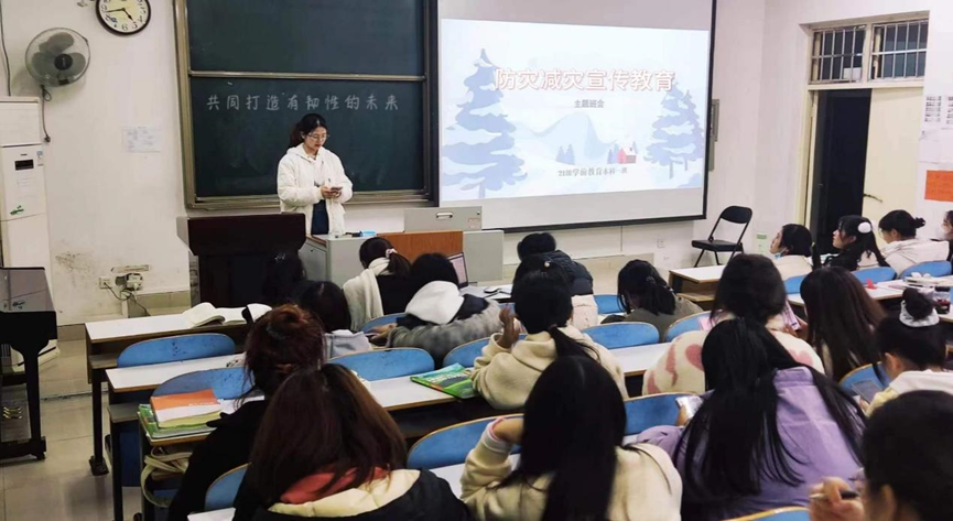 各班以救灾减灾为主题,开展了防震减灾宣讲活动、互动交流防灾知识活动、“有韧性的未来”主题班会。宣讲期间,向同学们讲述了在灾害面前如何保护个人安全,同时开展了问答环节,了解了同学们现阶段的安全技能和安全知识的掌握情况,从而进行多方面的补充。互动交流期间,班级内组织模拟了火灾逃生的场景,加深了同学们对此次班会的理解。“有韧性的未来”主题班会中,组织员工观看“防灾减灾知识”宣传视频,宣传普及灾害常识、防灾减灾知识和避灾自救互救技能。