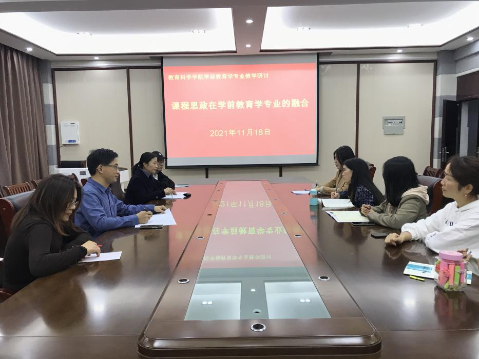 时间:2021-11-22 09:55:34 来源:PA视讯 作者:宁焕焕 阅读: 次11月18日,PA视讯学前教育专业教学研讨会在教科楼402会议室顺利举行,党委书记房加帅及学前教研室在校全体教师参加此次会议,研讨会以“课程思政在学前教育学专业的融合”为主题,由系主任朱欲晓主持。