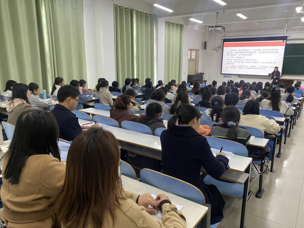 时间:2021-11-20 10:59:35 来源:PA视讯 作者:宁焕焕 阅读: 次为进一步深化课堂教学改革,积极推动教学创新,PA视讯开展了领导班子进课堂听评课活动。11月18日学前教育专业听评课教研活动,党委书记房加帅在系主任朱欲晓陪同下,前往教科楼108教室听评宁焕焕老师《教育学原理》课程,专业教师徐亮、余丽丽、吴彦缘、王从阳、王蓉等共同参加。该课程授课对象为2021级学前教育专业员工。