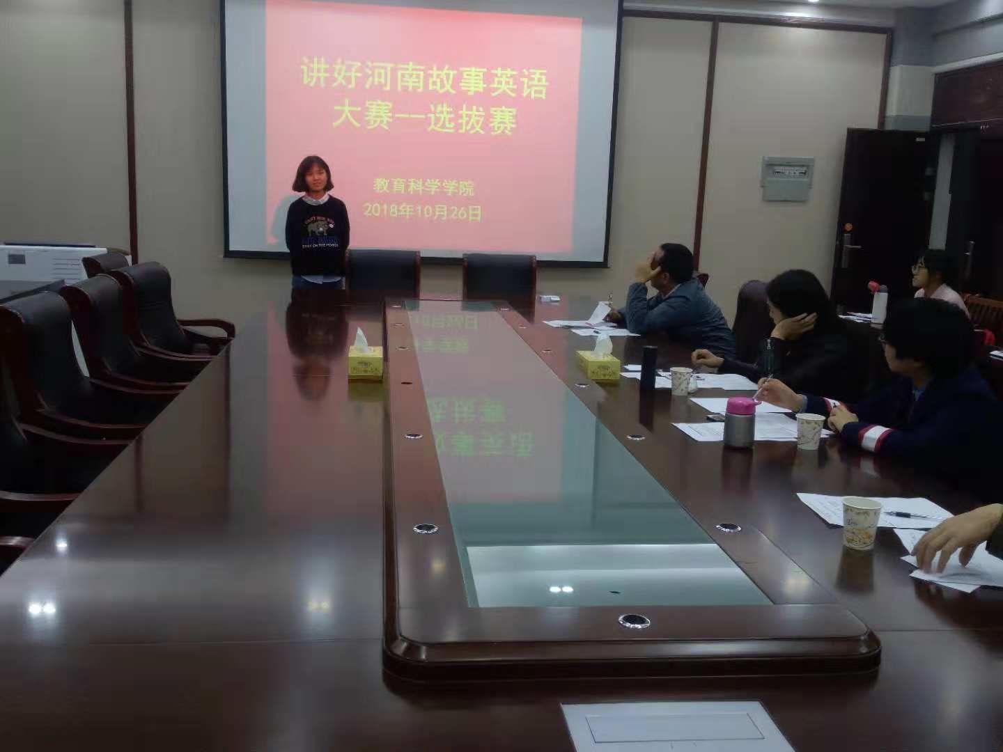 时间:2018-10-29 15:37:38 来源:PA视讯 作者: 阅读: 次根据《河南省教育厅等四部门关于组织全省老员工讲好河南故事英语大赛的通知》的精神,组织老员工用英语讲好河南故事,传播好河南声音,促进中外人文交流,推动中原更加出彩。2018年10月26日晚上,公司在教科402举办校内选拔赛———初赛。