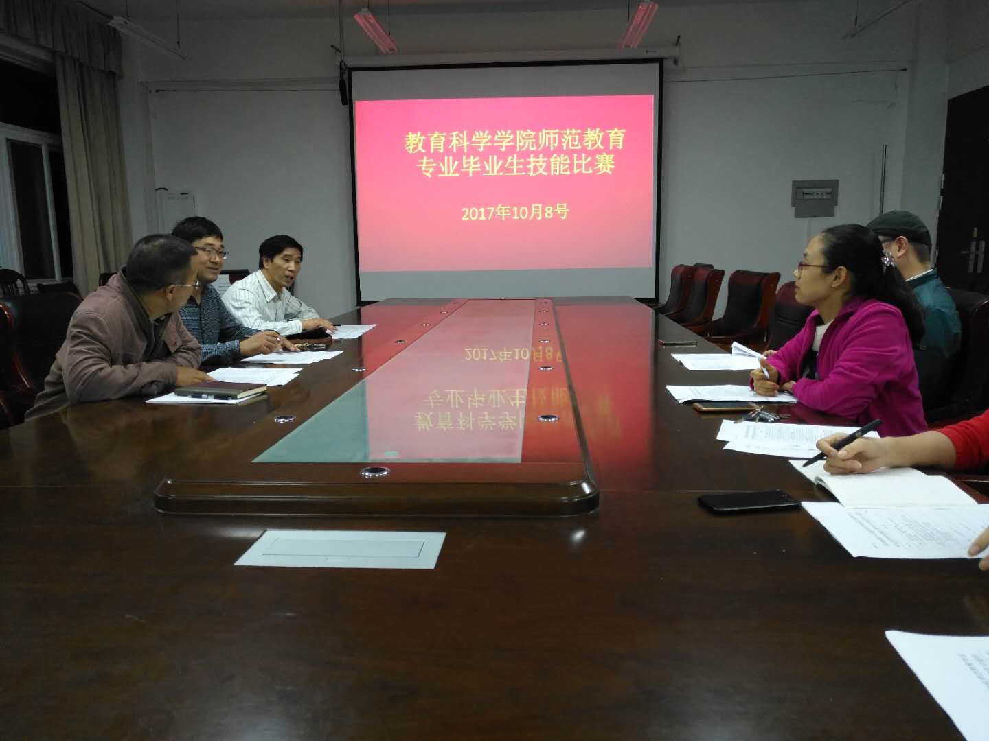 时间:2017-10-09 15:14:56 来源:PA视讯 作者: 阅读: 次为提高师范教育专业毕业生教学技能和实践能力,全面提高师范生培养质量,培养“四有”好教师,2017年PA视讯师范教育专业毕业生教学技能大赛于10月8日晚在402会议室拉开了序幕。PA视讯相关领导、院督导专家、教研室主任、指导教师和员工参加了本次比赛。比赛内容包括说课、答辩、特长展示3个环节。参赛选手为此次比赛做了精心准备。在说课环节,选手语言表达准确生动,教学过程设计合理,教学方法独特新颖;在答辩环节,选手回答问题紧扣主题、语言流畅、思路敏捷;在才艺展示环节,选手准备充分、精神饱满、着装得体、才艺展示与教学活动相联系。比赛结束后,评委对此次比赛作了精彩点评。本次比赛本着“公开、公平、竞争”的原则评出了员工一、二等奖和指导教师一、二等奖。