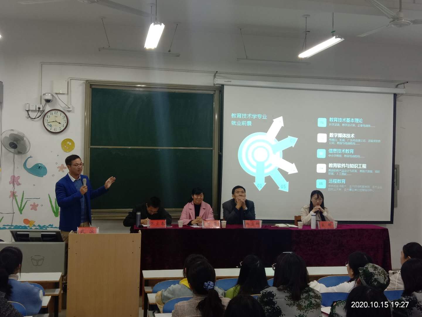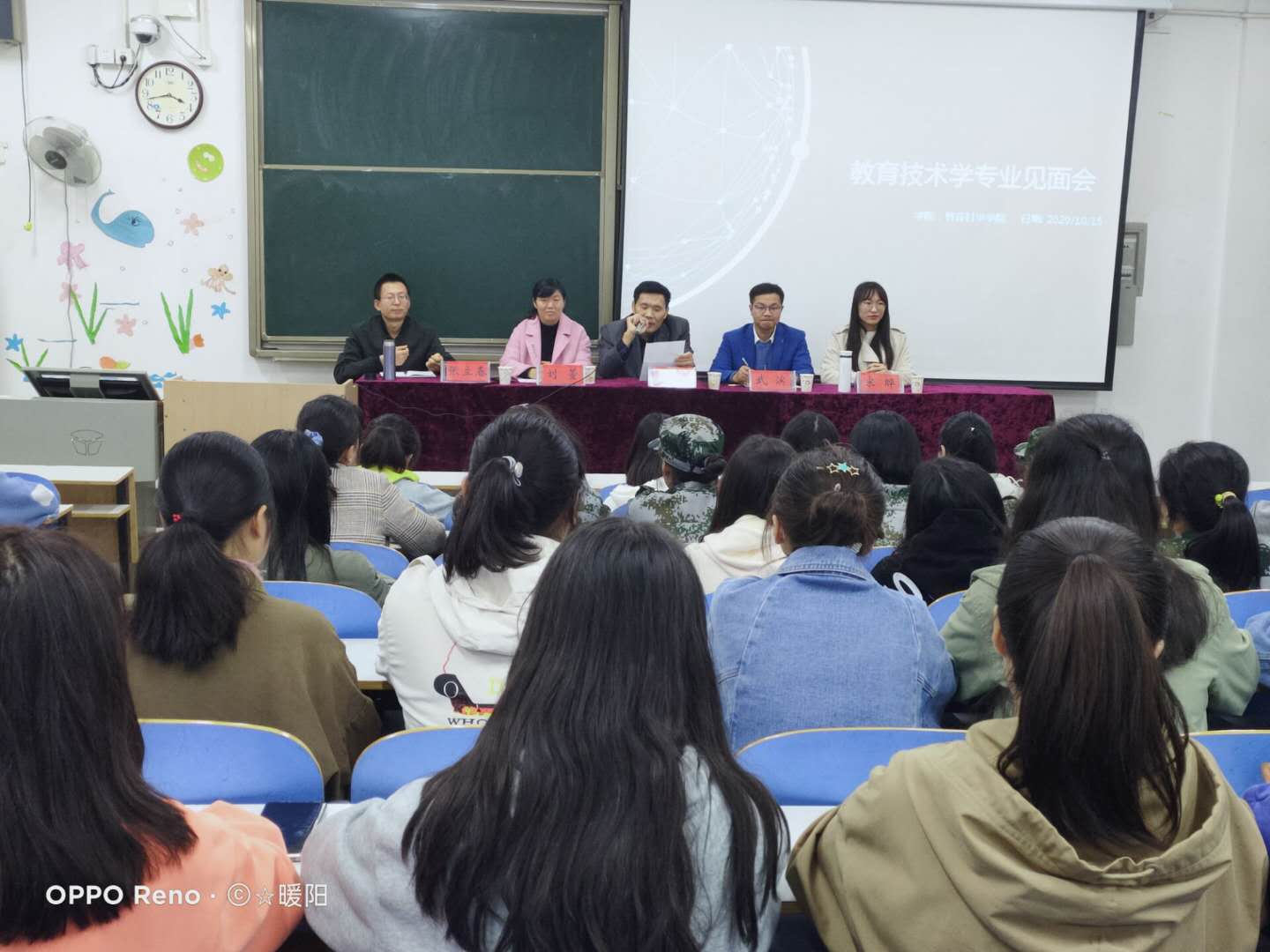时间:2020-10-16 10:20:15 来源:PA视讯 作者: 阅读: 次2020年10月15日,信阳师范公司教科院2020级教育技术学班导师见面会在教科楼201教室举行。郑立坤教授 ,刘萱老师,武滨博士 ,宋晔老师,张立春老师参加此次见面会。郑立坤教授首先对教育技术学的简介及发展背景进行了详细的介绍,让新生对自己所学的专业有所了解。刘萱老师将专业培养方案及专业课程向新生进行了讲解,并且列举出很多教育技术学往届优秀的毕业生,让员工真正感受到这个专业的优势和可观的发展。武滨博士就员工比较关心的就业前景进行了细致地解答,将教育技术学专业多元化多领域的就业方向通过形象生动的语言展现给员工。宋晔老师结合自身的学习和经历用,实际例子讲述了教育技术学的就业发展,并且总结了自己上学的经验,给员工留下深刻影响。最后,张立春老师对几位老师的发言进行了详细总结,并且作为2020级教育技术学班的班主任,张立春老师嘱托同学一定要结合自身的情况学会如何去高效率学习,做到一专多能!