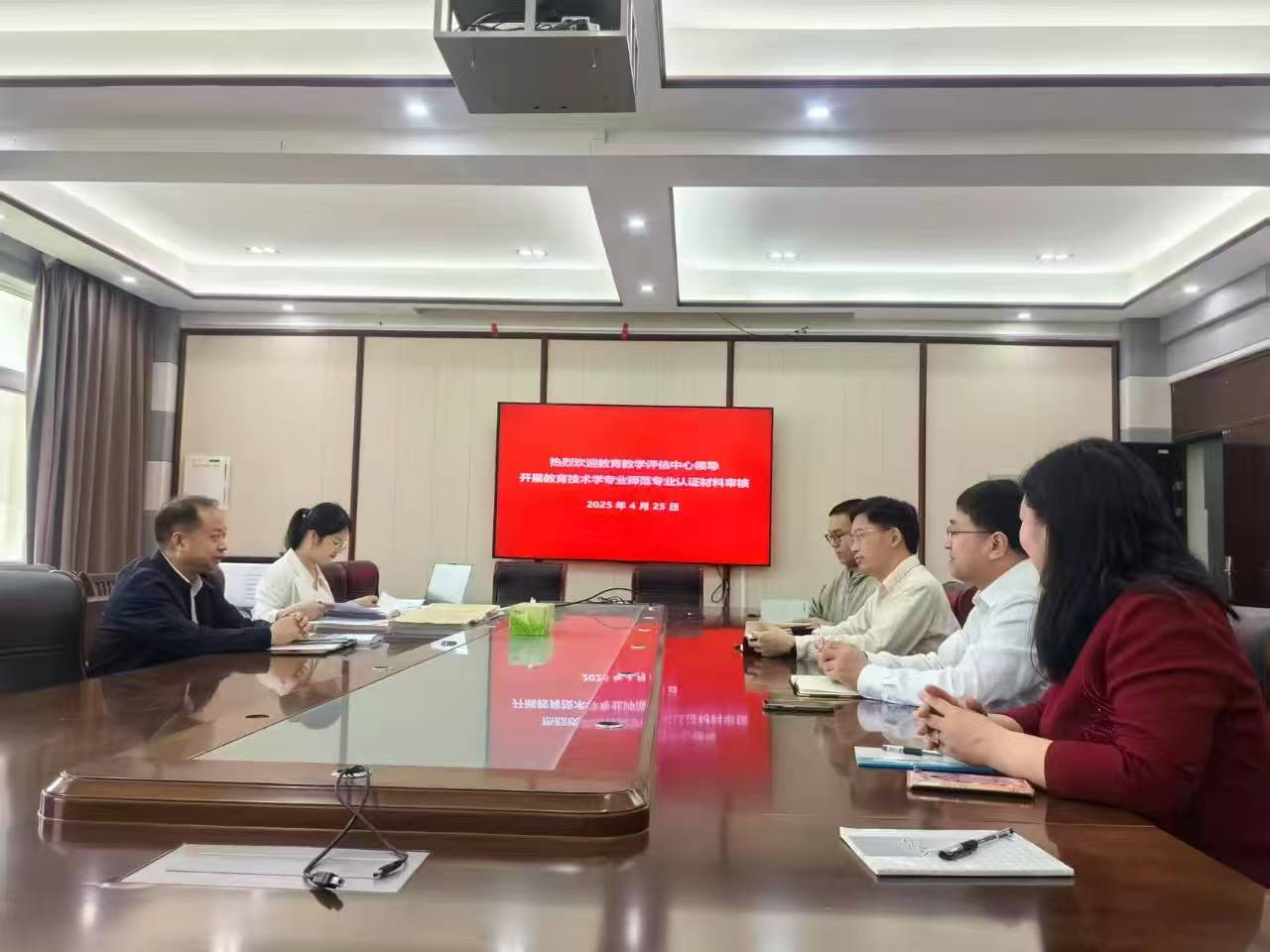 2025年4月25日,教育技术学专业开展师范专业认证材料审核工作,公司公司产品评估中心主任余国忠、科长胡月,教育科学公司党委书记房加帅、副经理郭勇、教育技术学系主任崔宇路、教学秘书刘萱老师参加此次会议。